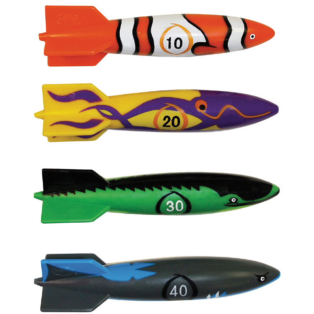 O excelenta jucarie de apa: daca pana acum copiii se jucau doar cu mingea dand pase de la unul la altul, acum pot pasa si pe sub apa folosind torpilele subacvatice.